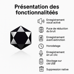 Alliez discrétion, design et efficacité avec le pendentif enregistreur vocal M6. Plus qu’un simple outil d’enregistrement, il se présente comme un véritable accessoire raffiné au design hexagonal élégant.